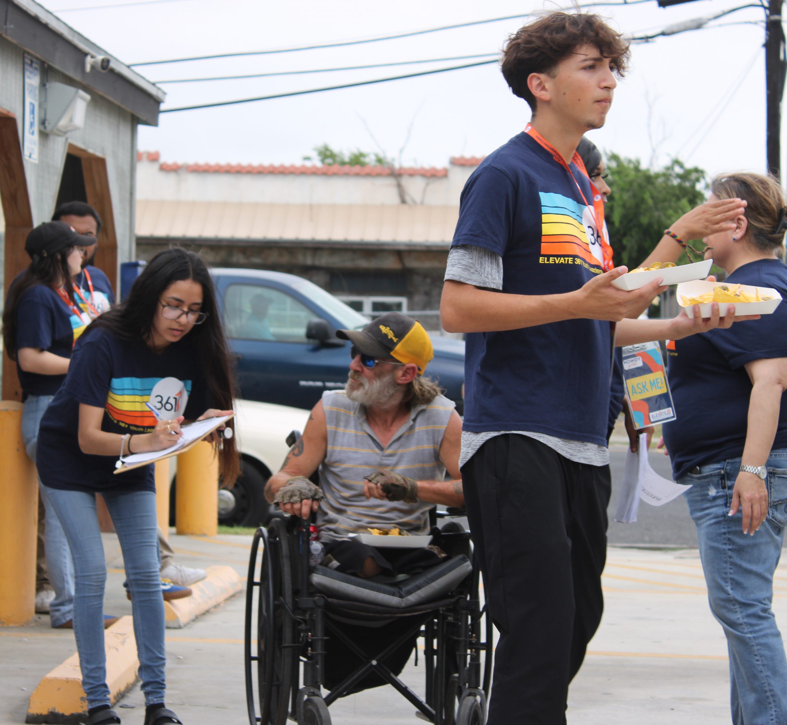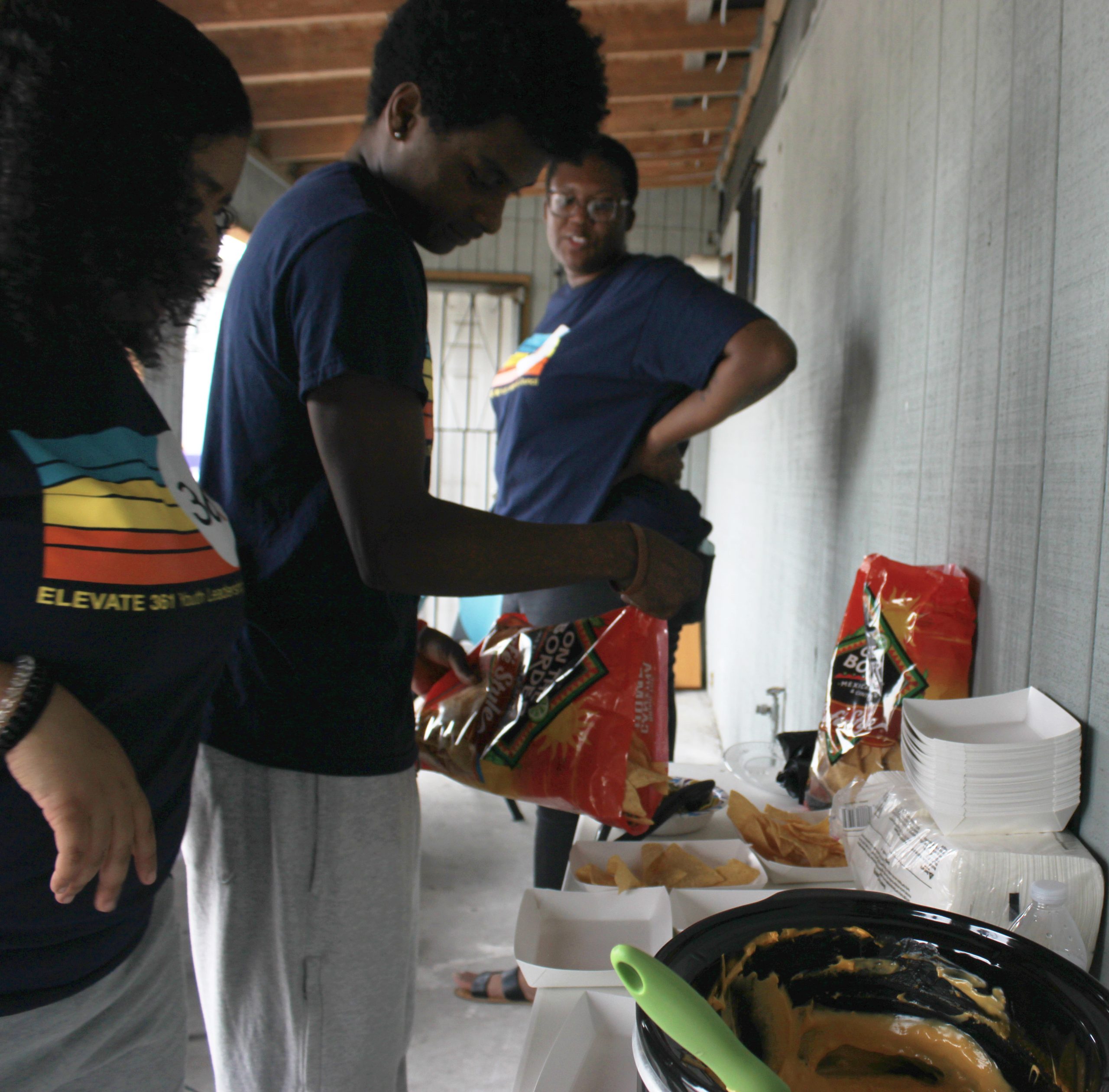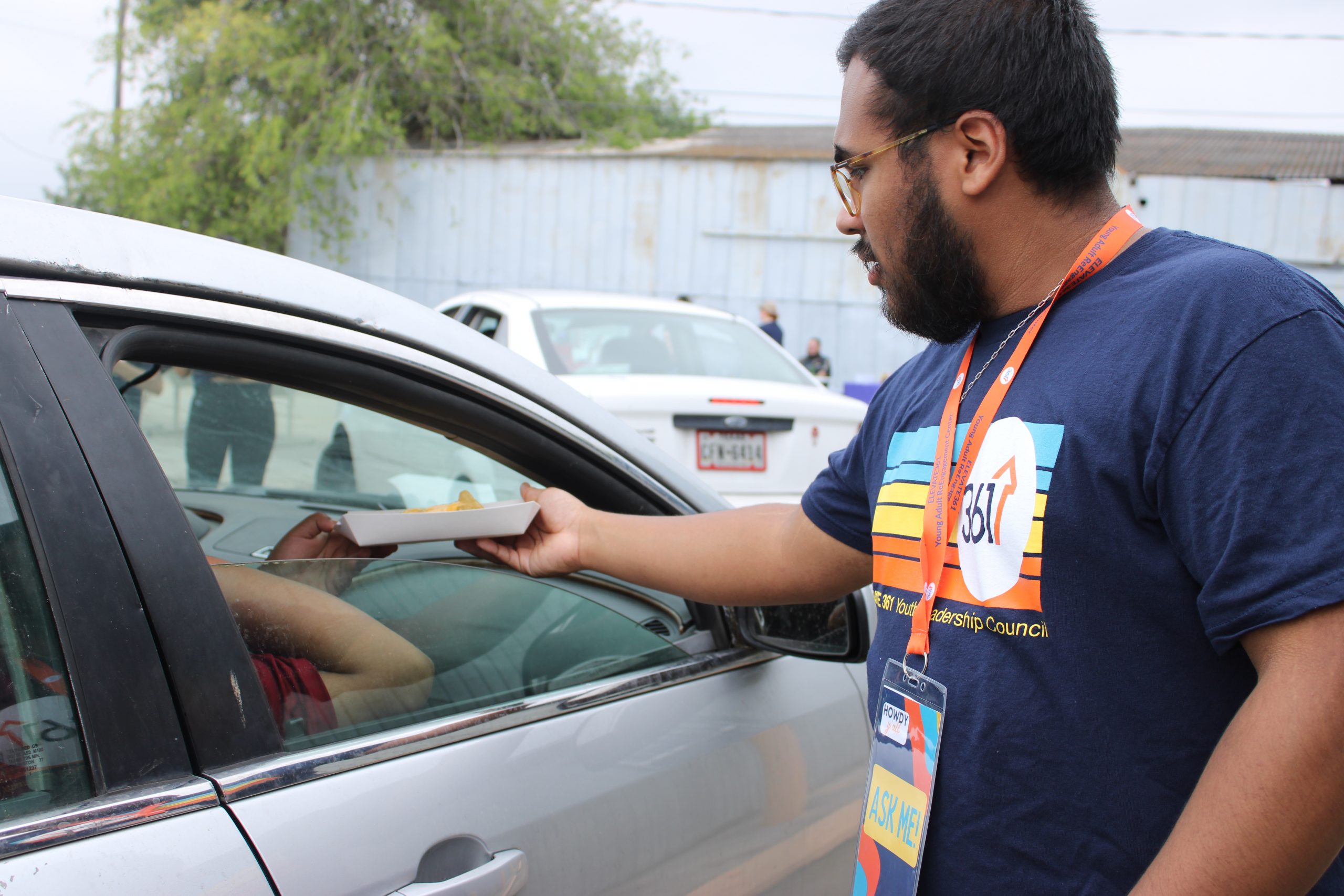 Upon its grand opening, Elevate361’s young volunteers assist with signing up visitors, making nachos with cheese up on requests and placing food bank boxes inside trunks and back seats of families in need.